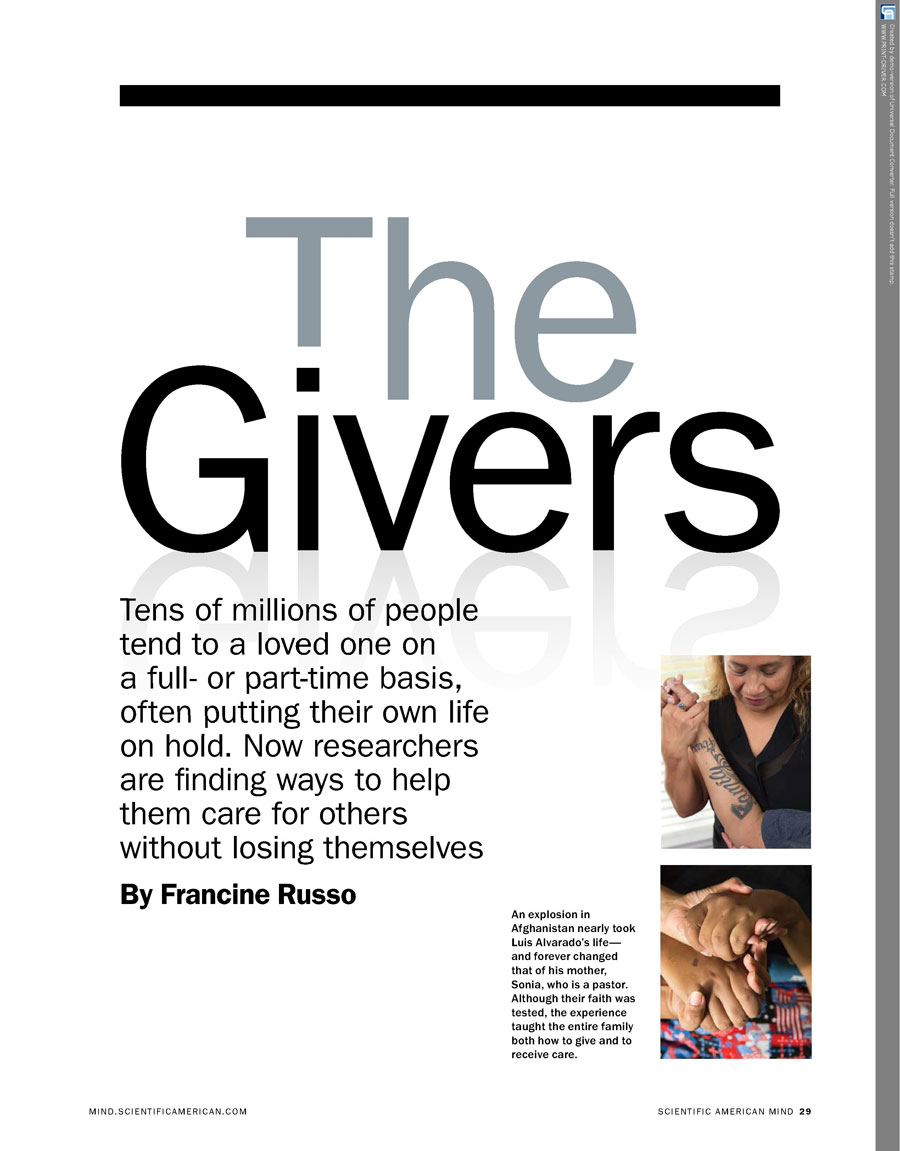 National PR coverage includes an article in MIND Magazine by Scientific American about caregiver issues.